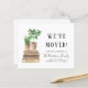 Budget-friendly boho chic new home / change of address moving announcement featuring watercolors of books and house plants and minimal modern typography. On the front, personalise with your family name, the "We've Moved" text and your new address. On the reverse side you can personalise your announcement in more detail and include a telephone number and email if desired.