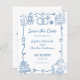 Whimsical Hand Drawn Illustrations Doodles French Style Wedding Save the Date Invitation