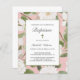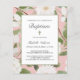 Featuring awhite flowers and leaves in watercolor palette of ivory, cream sage and moss green on a DELICATE PINK background this simply and classic look for Baptism or Christening Invitation makes a gorgeous choice for an elegant, or formal celebration with a rustic twist.