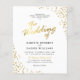 Modern budget wedding invitations featuring an elegant white background that can be changed to any colour, gold sparkly glitter, and a wedding template that is easy to personalise.