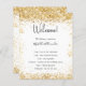 A modern, elegant wedding program, timeline. A white background decorated with faux gold glitter dust. Personalise and add your names and wedding details. Black coloured letters. If you have more text it's possible to reduce the line space.