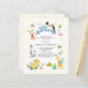 Cute jungle safari animals themed birthday invitation featuring tropical animals, an exotic bird, and other cute party elements. Send out the invites and celebrate the first birthday of the wild one with friends and family.