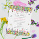 Bohemian, modern and elegant, this budget bridal shower invitation features brightly coloured fields of delicate wildflowers with butterflies, bumble bees and ladybugs.