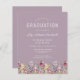 A beautiful watercolor floral border of wildflowers decorates the bottom edge of this trendy boho graduation party invitation. Customise the white text on a mauve background, with the graduate's name in handwriting script; the school and class year in sans serif; and the date, venue, and RSVP details in serif font. The back of the card is solid mauve.