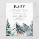 Step into the winter forest and shower the Mum-to-be with this budget baby shower invitation featuring hand painted forest, pine trees and deer scenery in snow.