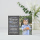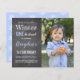 A festive "Winter Onederland" card to invite guests to your little boy's first birthday party. On the left, personalise blue and white text on a chalkboard background decorated with subtle grey snowflakes. Customise the right half of the card with a photo of your birthday boy. The back of the card features a cheerful blue and white snowflake pattern that coordinates with the text.