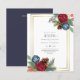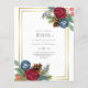 Beautiful Turquoise teal blue (peacokc blue) and burgundy, wine coloured Roses, sage green leaves, rustic pine cones, and a gold frame feature on this winter wedding item which is part of a larger collection that includes budget wedding invitations, save the dates, RSVPs, labels, gifts, stationery, and more. For a FREE winter wedding planning, guide visit weddingdesignchic.com.