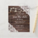Save money on formal invitations with this smaller invitation that has an option for envelopes. Get your guests ready for the amazing wedding with your Wood, Lace & Lights Photo Save the Date Cards.