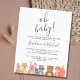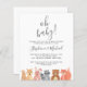 This Budget Couples Baby Shower Invitation is decorated with watercolor woodland animals: squirrel, rabbit, racoon, bear, and fox.