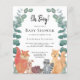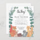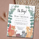 This budget boy's Baby Shower is decorated with woodland animals and eucalyptus greenery. It says "Oh Boy!" in stylish script typography.