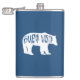 The flask itself is fine. It’s a cheap flask, obviously bought in bulk, however am prepared to overlook that. Given that it is a personalized item, I would have liked to have seen gift boxing instead of the generic packaging. Terrible printing, and/or quality. It’s a cheap, tacky vinyl. It is not cut straight and is also applied in a way that it is overhanging the bottom, causing the glue to catch on items and it will eventually roll and tear, damaging the wrap.