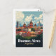 A colorful, vintage-style travel poster illustration showcasing the historic skyline of Buenos Aires, Argentina. The image is dominated by the city's unique architecture, featuring numerous buildings with distinctive red and copper domes, set against a bright, cloudy blue sky. Lush green trees line the foreground, with the city name "Buenos Aires" and "Argentina" displayed on a dark blue banner at the bottom.