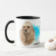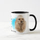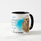 A portrait of a beautiful buff or blonde coloured American Cocker Spaniel Dog is the feature on two sides of this mug. Each image is placed on a bright blue splatter background. Between the two images is the text that describes this loyal and playful companion, with "the AMERICAN COCKER SPANIEL" in black at the bottom. All the text is easily customised to anything you'd prefer so that you may describe your own loyal friend.