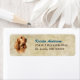 The left side of these return address labels feature a portrait of a beautiful red buff colored Cocker Spaniel dog. Your custom text is in cerulean blue and brown at the right. Everything is placed on an abstract tan background.