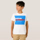100% cotton so perfect for summer, It is a nicely designed t-shirt, the fabric is soft and the seams finished well, the body of the t shirt has no side seams. I bought a medium size for my two grandsons, aged 9 and 8 it will be slightly big on them but I would rather that than too small