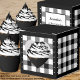 Heart black and white buffalo check favour box. Text on the back of the box is customisable. If you use the 'edit design' button/tool, you can also add your own images/photos. Other colorways available.