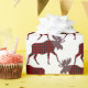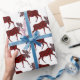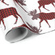 Bull moose wearing black and red tartan strolls across white background. Customise as you wish.