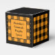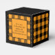 Classic orange and black buffalo check favour box. Text on both sides of the box is customisable. If you use the 'edit design' button/tool, you can also add your own images/photos. Other colorways available.