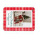 This charming Merry Christmas flexible photo magnet blends classic holiday cheer with a trendy design, perfect for decorating your fridge or any magnetic surface. The border features a bold, festive red and white gingham plaid pattern, creating a warm and traditional cottage or farmhouse feel. Adorning the top are delicate green ribbon bows for an extra touch of elegance. This magnet beautifully frames your favourite vertical family photo and includes space for a personalised message and year. It's a wonderful, durable keepsake to send a heartfelt, personal greeting that stays visible all season long. Easily customise the text and upload your picture to make this plaid Christmas magnet uniquely yours!