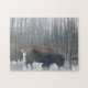 Buffalo in the snow with aspens. A pretty and challenging puzzle!