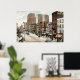 A reproduction of a vintage post card shows turn-of-the-century life, complete with trolley cars!