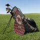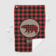 The background on this personalised golf towel is a red and black buffalo plaid pattern. At the centre is a tan circle banner with a matching red and black plaid silhouette bear image. Below is a small matching banner with your three letter monogram. Be sure to see the matching golf items in our store.