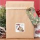 This Holiday sticker features a beautiful Birman kitten with bright blue eyes sitting in a wicker basket. A red and black buffalo plaid pillow is behind it, and a matching gift package is at one side. Buffalo plaid typography pairs with black script to say "MERRY Christmas", with "Happy New Year" below that. Your custom signature is in two easy to change text fields. Perfect for your Holiday correspondence or gift packages.