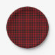 Buffalo plaid paper plates with red and black chequered pattern. You can easily customise these Boho rustic cabin buffalo plaid lumberjack paper plates by adding the text of your choice.