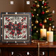 This appealing square wall clock features a dimensional, layered design with a rustic Christmas aesthetic. The centerpiece is a large, black and red buffalo plaid bow, intricately detailed to look three-dimensional. The bow sits on a white background that resembles vertical wood planks. The text "MERRY CHRISTMAS" is prominently displayed, separated by the bow and small black pine trees. The entire design is accented with layered poinsettia flowers, holly, and swirling decorative elements. The illustration is set within a wide, dark outer wood-look frame, which is simulated using high-detail artwork and is not real wood.