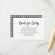 This buffalo plaid bring a book baby shower enclosure card is perfect for your gender neutral baby shower. Send these cute baby shower book game enclosure cards out with your baby shower invitations to ask guests to help build the baby's library. Your guests can write a message for baby inside the book, instead of inside a card. What a cute way for the parents and new baby to remember the shower guests! The simple and rustic design features black and white buffalo check back and black script font.