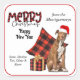 This Holiday sticker features a brown and white Pitbull dog wearing a red and white Santa hat. Beside the dog is a red and black buffalo plaid pillow and a matching gift package. Buffalo plaid typography pairs with black script to say "MERRY Christmas", with "Happy New Year" below that. Your custom signature is in two easy to change text fields. Perfect for your Holiday correspondence.
