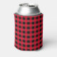 This classic buffalo plaid check in red and black is a stylish way to keep your beverage cool.