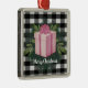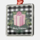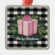 Buffalo Plaid Christmas Gift | Pink Metal Ornament