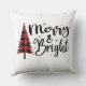 Stylish typography Merry and Bright brush script saying with a buffalo plaid tree in red and black. You will love this trendy and rustic themed pillow. See our matching products as well!