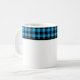 This ceramic coffee mug is shown with a lovely black and blue color buffalo plaid.