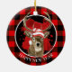 Buffalo Plaid Deer Santa Hat Ceramic Ornament