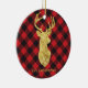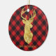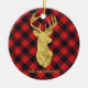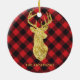 Buffalo Plaid Gold Deer Monogram Christmas Ceramic Ornament