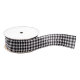 Grosgrain ribbon is shown in a black and white buffalo plaid print.