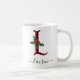 Black and Red Buffalo Plaid L Monogram Xmas Coffee Mug featuring a cute A initial letter with a buffalo plaid pattern and mistletoe watercolor element. The custom name template under the L monogram is in a swirly handwritten calligraphy font with flourishes. Give a thoughtful personalised Christmas mug as a winter holiday gift or stocking stuffer. For a different monogram letter check out the "Other products from this collection" section below.