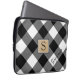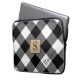 Buffalo Plaid Monogram Script Name Black White Laptop Sleeve