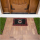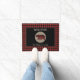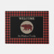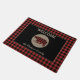 A buffalo plaid silhouette bear is at the centre of a tan circle on this attractive door mat. The circle is placed on a black background, which is framed with a matching red and black buffalo plaid border. Your custom text is in matching tan above and below the circle and bear image. Perfect for a cabin, woodland home, but comfortable at home in the city, too!