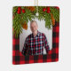 Buffalo Plaid Pine Boughs Memorial Photo Christmas Ceramic Ornament