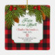 Country, rustic red and black buffalo plaid with pine boughs, cones and berries memorial photo Christmas ornament (square shape). The front has a photo of your loved one that you can change out. The back has your loved one's name, years lived and a nice verse that you can change. Evergreen branches with pine cones and berries paired with country or rustic buffalo plaid pattern in red and black.