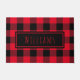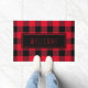 Welcome your family and friends this fall and winter with this custom name doormat in rustic red and black buffalo plaid. Personalise it with your family name or a word of your choice in a centre panel in modern red lettering on black with a red border. Great for the entire autumn, Christmas and winter seasons. Designed by © Tim Coffey.