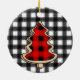 Buffalo Plaid, Red Gingham Christmas Trees Ceramic Ornament