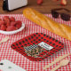 Buffalo Plaid, Red Gingham Christmas Trees Paper Plate
