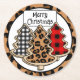 Black and white Buffalo plaid, red and black gingham, leopard print Christmas Trees paper coasters for your Christmas party.