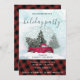 Elegant trendy snow winter watercolor red truck scene holiday party corporate invitation design.