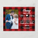 buffalo plaid rustic wedding change the date postcards. Vintage lumberjack Wedding Postponement Date Change Postcard.