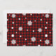 buffalo plaid red background in watercolor splash sprinkled with white snowflakes and your own photo in the centre and the personalised script in elegant serif font